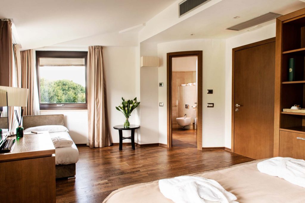 Le Comfort Plus sono le camere da 25 m²* a 30 m²* capaci di ospitare fino a tre persone, un rifugio accogliente perfetto per una vacanza in famiglia grazie al letto singolo aggiuntivo. Arredate con legni di faggio dell’Appennino, alcune con vista panoramica sulle montagne circostanti hanno un bagno con doccia, lavabo, wc e bidet, televisione Lcd con Sky, WiFi, telefono, minibar e cassaforte.